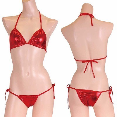 パキッとコントラストの効いたキラキラメタリックビキニ レッド レッド