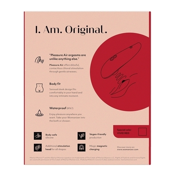 人気のWomanizerからスペシャルエディションとしてクラシック2モデルのマリリンモンローバージョンが新登場!中身はウーマナイザーが初めての方におすすめのクラシック2のため、プレゼントにも最適♪機能面は全て同じですが、雰囲気の異なる4種類のカラーバリエーションで展開されていて、カラバリはホワイトマーブル、ブラックマーブル、ビビットレッド、ミントの4種類をご用意!梱包箱もオシャレなマリリンをフューチャーしたデザインで、プレゼントとしても喜ばれること間違いなし♪電源はUSB充電式で電池スタミナも抜群♪オーガズムの余韻をゆったりと楽しめる「アフターグローフューチャー機能」を搭載していて「スターレット3」や「リバティ」よりも強力な10段階の振動強弱を楽しみながら、滑らかでマットな肌触りがゴージャスな気分にさせてくれます♪こちらの商品は受注発注商品の為、ご注文から発送まで2〜3営業日掛かる場合が御座います。