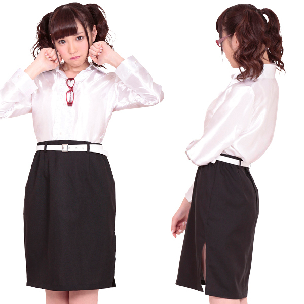憧れの美人教師に変身!ブラックのスカートに入ったスリットから覗く生足が、セクシーなコスチューム。