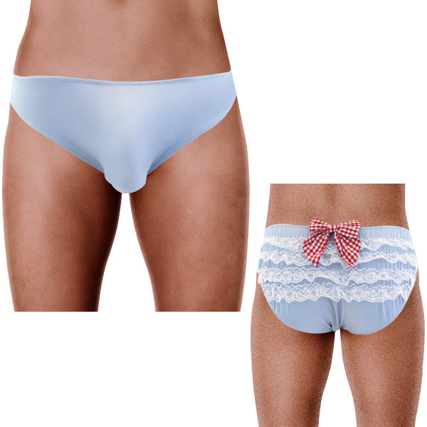 シンプルなフロントとは対照的に、バックはフリルレースとギンガムリボンでとびきりキュート!コスプレにもオススメな可愛いショーツです。