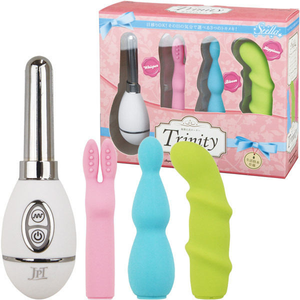 3つのキャップは、クリや乳首を挟んで刺激できるイボ付き耳のピンク、丸い先端と2つのくびれがほどよく括約筋を刺激するブルー、Gスポットに届きやすいカーブと螺旋のグリーン!もちろん、これらを被せなくても遊べます。