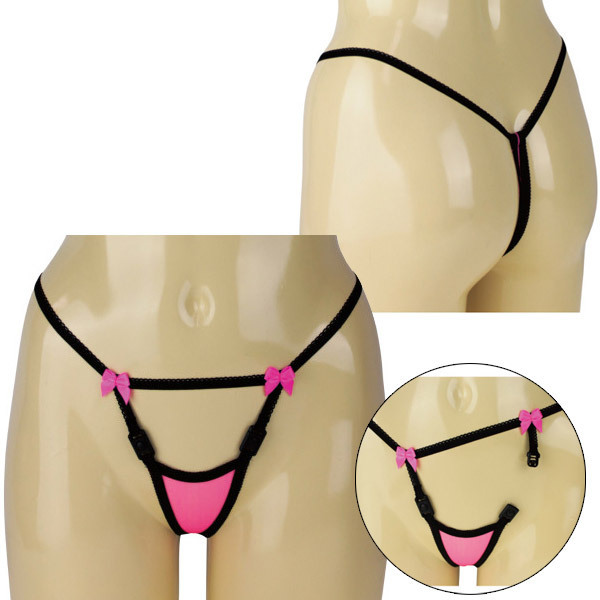紐オンリーのYバック、限界ギリギリの極小フロントといった大胆なデザインでも、ラブリーなピンクリボンで可愛さもしっかり備えたランジェリー!着用したままクロッチを外せるバックル付きで遊びゴコロもたっぷりです。