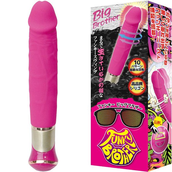リアルなペニス型のストレートボディは亀頭部分に強力なモーターを内蔵!10パターンの振動+スイング機能に加え、ボタンを押している間は生き物のように激しく暴れるファンキーバースト機能が発生。