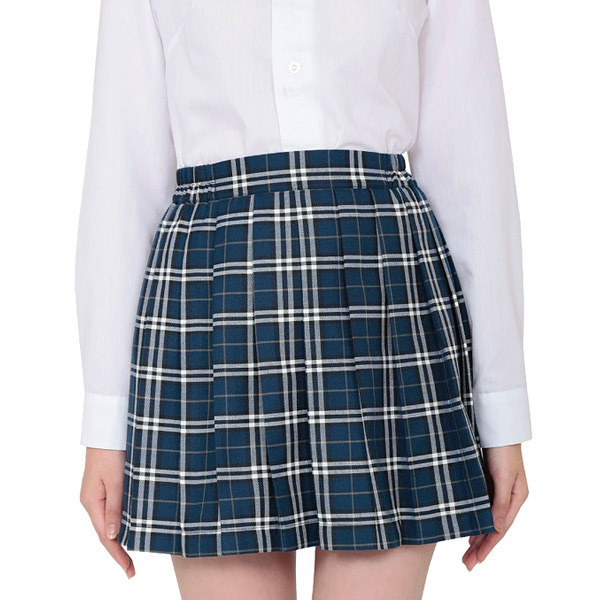 スカートを変えるだけでイメージがらり♪落ち着いたブルーチェック柄のプリーツスカート単品「鉄板スタイルチェックスカート ブルー」。