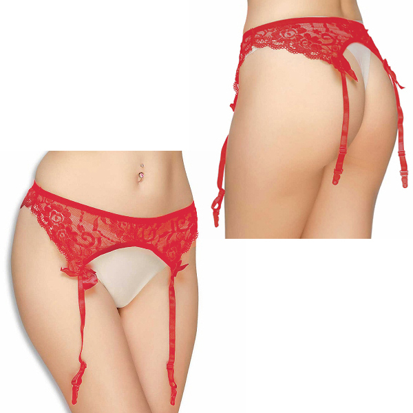 情熱的な赤が大人の色気を演出!美しいフラワーレースの定番ガーターストッキング!両サイドのリボンのワンポイントもキュート♪