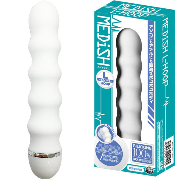 ●メディッシュ・Lフープver●肌を傷つける心配がない100%シリコン素材●滑らかな挿入感・初心者にもGOOD●アソコ&アナル責めに最適な凸凹ボディ●7種類の振動パターンを搭載●簡単に扱えるボタンスイッチ●3秒長押し→電源ON/OFF●押す度に振動切替え●単三電池×1本使用(底部のキャップを外せば電池交換可能)。