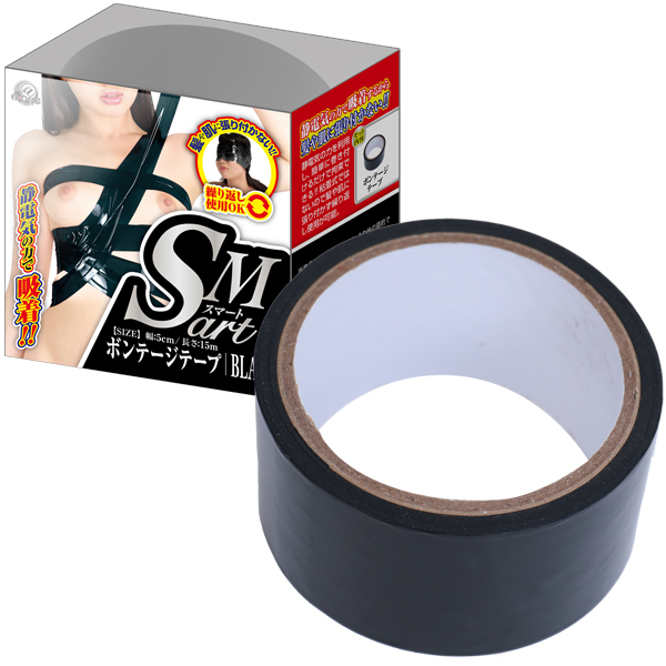 ●大人気SMart(スマート)シリーズ●ツヤ感のある黒ビニールテープ●静電気でテープ同士が吸着する非粘着式●食品ラップのようにピタッと密着●全身拘束もできる全長15メートル●髪や肌に粘着せず繰り返し使用可。