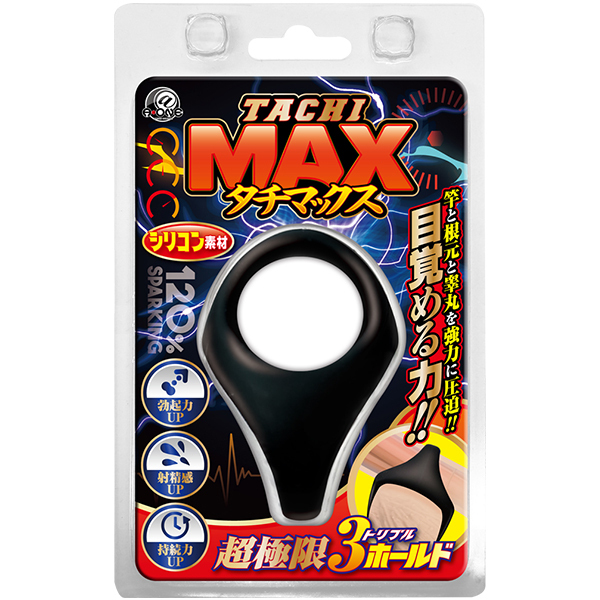 アソコを強力に圧迫!!マックスパワーを引き出すトリプルホールドリング!!竿・根元・睾丸の3点を圧迫し、あなたに眠る力をギリギリまで引き出す。