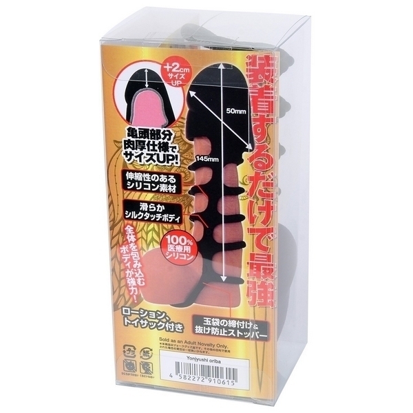 装着するだけで+1.5cmサイズアップ♪オールカバータイプのペニスサック「四銃士 オリバー」。
